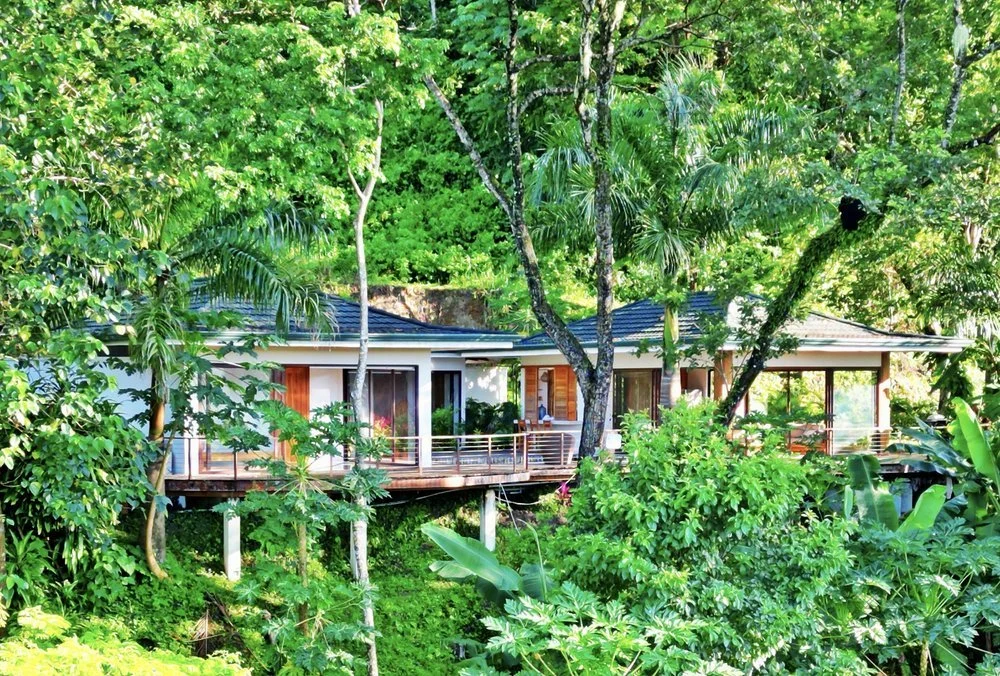 Casa Jaguar is located at the highest point of the property. It's also the largest villa with 4 bedrooms + 3 outdoor bathrooms, sweeping mountain and ocean views, a refreshing pool, comfy seating and large chef's kitchen where we will gather for meals. Cozy up on the comfy couches, learn some costa rican cooking, or relax on the sun-shelf of the pool.